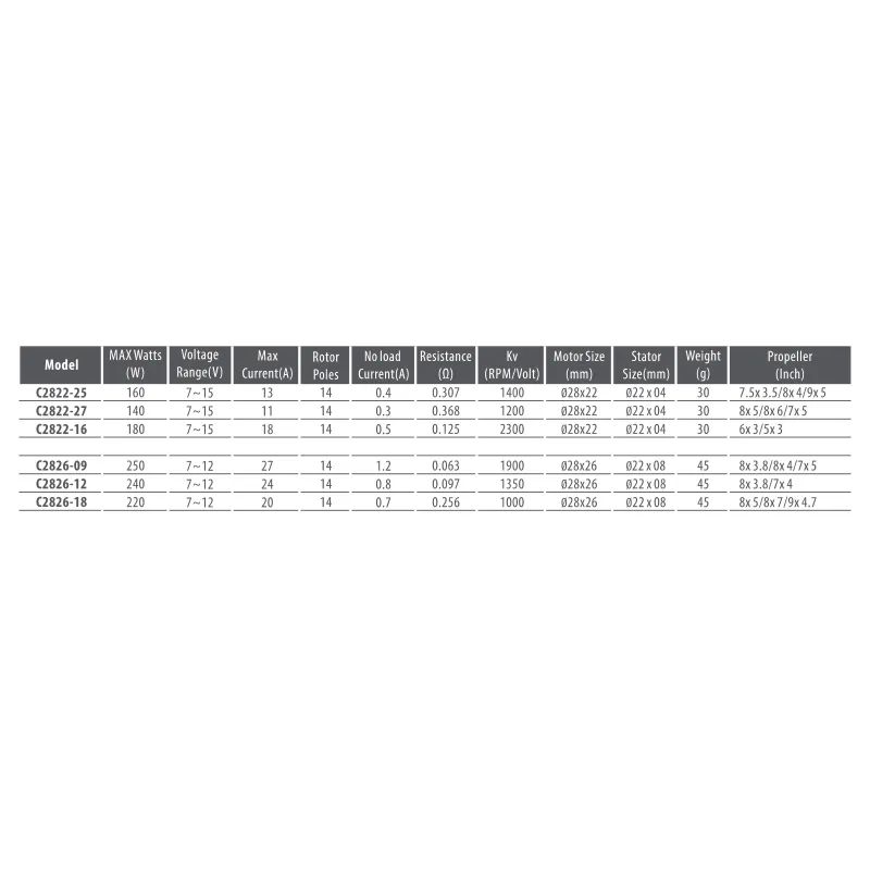 - Recommended Propellers: 7.5 x 3.5", 8 x 4", 9 x 5"