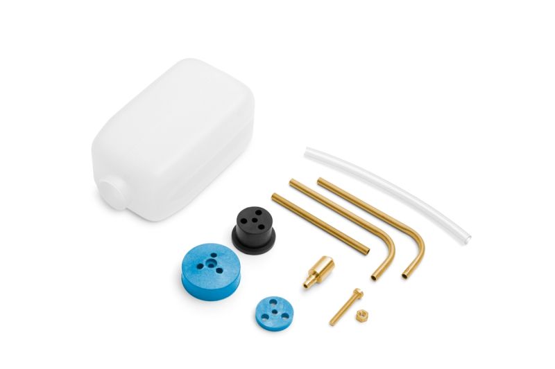 Предварително огънати месингови фитинги и смукателни тежести, силиконов маркуч.