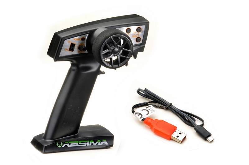 Командите за газ/спирачка и кормилно управление се изпълняват прецизно и в пълна пропорция от 2.4GHz дистанционно управление. Благодарение на модерната трансмисионна система, разбира се, могат да се управляват няколко превозни средства едновременно. Така че нищо не пречи на мини Гран При у дома!